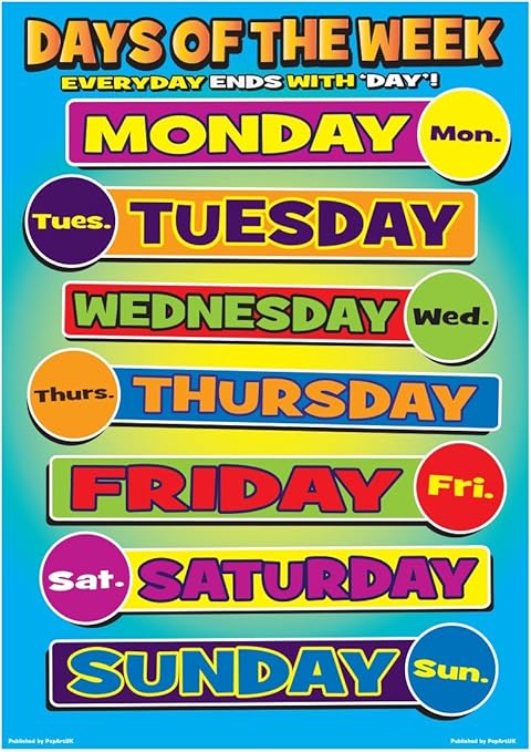 Tableau Mural Pour Enfants Avec Les Jours De La Semaine Amazon Fr Fournitures De Bureau