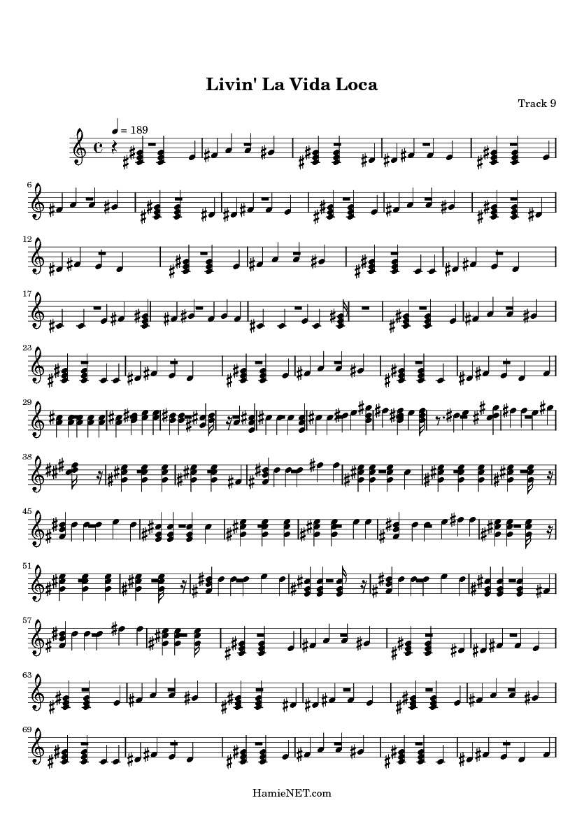 Livin La Vida Loca Sheet Music Ricky Martin Guitar Chords Lyrics