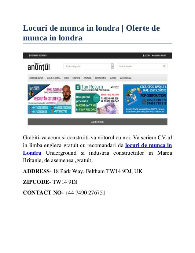 Locuri Munca Londra Loc Munca Uk Anunturi Munca Anglia Rolo