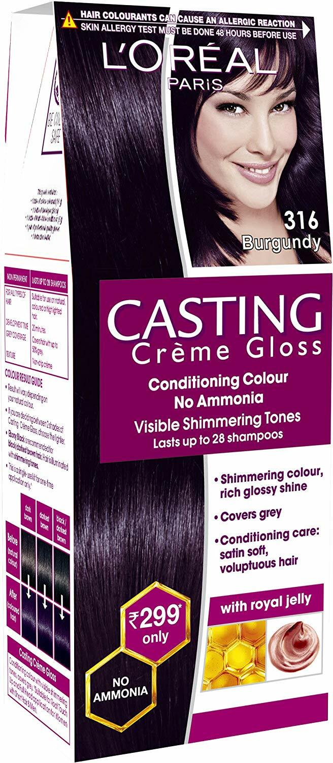 Loreal casting creme gloss 316. L oreal casting creme gloss medium brown 500. Loreal casting crème gloss plum 316. Only 3 left in stock order soon. Though we understand that it s all chemical but a no ammonia is a much safer option here.
