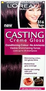 L oreal paris casting cream gloss conditioning colour burgundy 316 1234 https amzn to 2lguk8h new casting creme gloss l oreal paris casting creme glos. The perfect first hair dye the uk s no 1 hair colour for no ammonia casting crème gloss is a gentle way to add natural looking colour to your hair the no ammonia créme formula blends away grey hair and provides a luscious smell. Loreal casting crème gloss plum 316 4 out of 5 stars 29 16 19 16. L oreal paris casting creme gloss 316 plum gives excellent coverage to the grey hair.