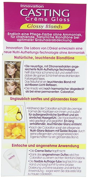 L Oreal Paris Casting Creme Gloss Semi Permanent Blonde Hair Dye Blends Away Grey Hair Leaving A Radiant Hair Colour Blonde Hair Dye 801 Satin Blonde Amazon Co Uk Beauty