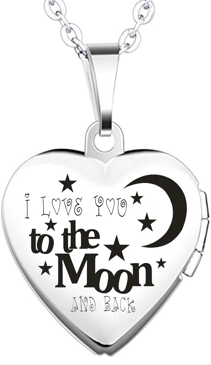 Ixiqi Jewelry Engraved I Love You To The Moon And Back Titanium Heart Infinity Love Locket Necklace Necklaces Gifts Present For Women Photo 50cm Chain Amazon Co Uk Clothing