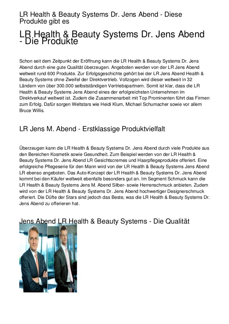 Lr Health Beauty Systems Dr Jens Abend Diese Produkte Gibt Es