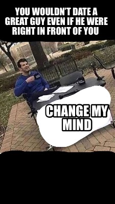 Meme Creator Funny You Wouldn T Date A Great Guy Even If He Were Right In Front Of You Change My Meme Generator At Memecreator Org