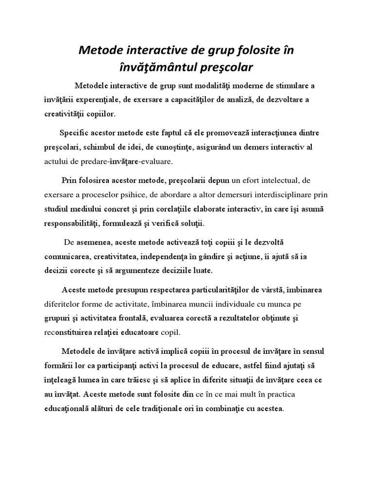 Metode De Predare Invatare In Invatamantul Prescolar Si Metodica Activit De Ed Doc Document