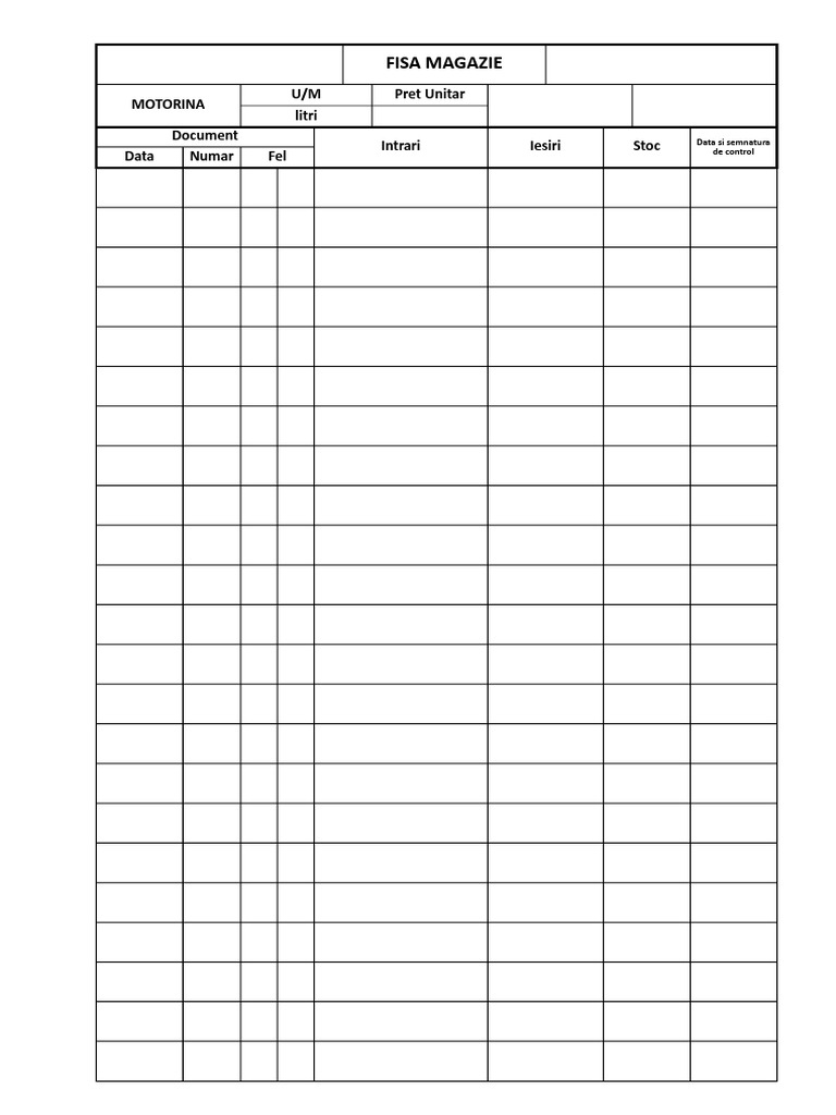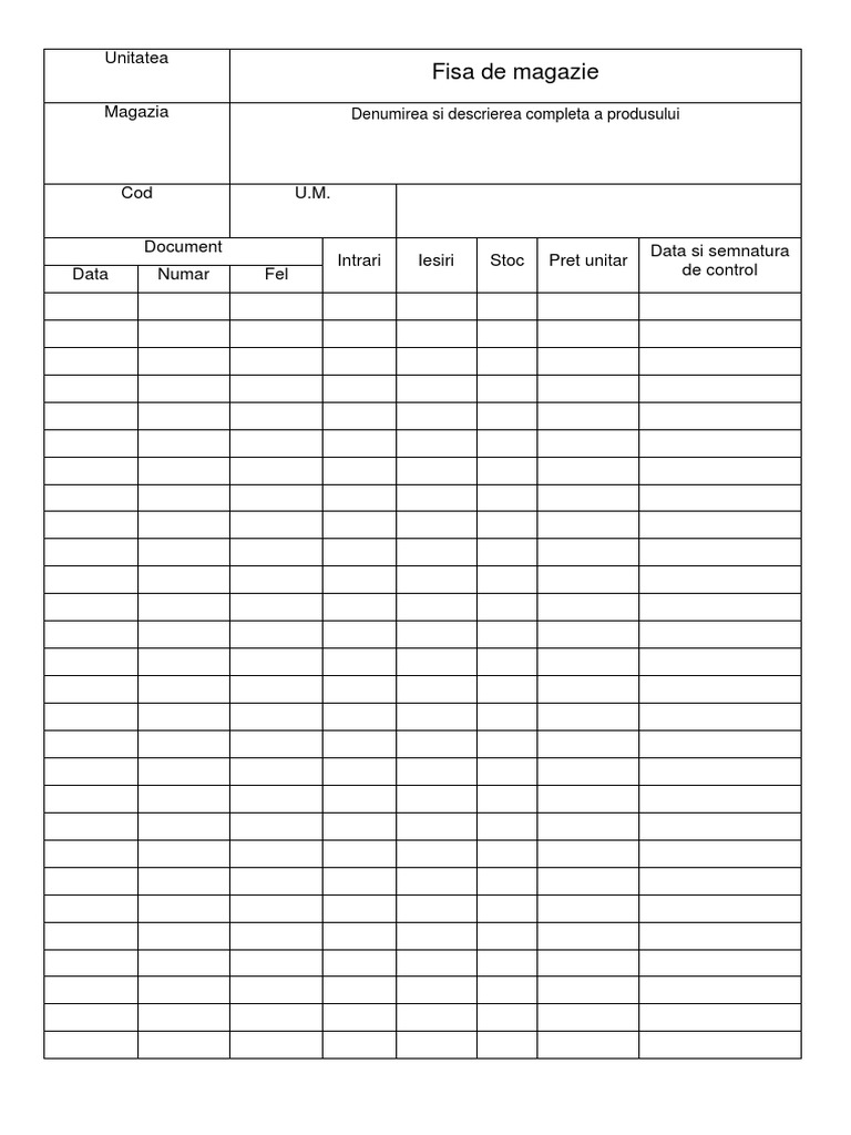 Model Fisa De Magazie In Word