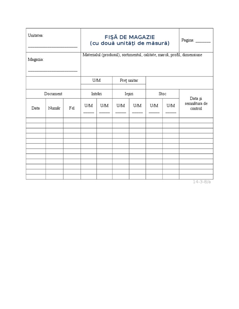 Fisa De Magazie Cu Doua Unitati De Masura