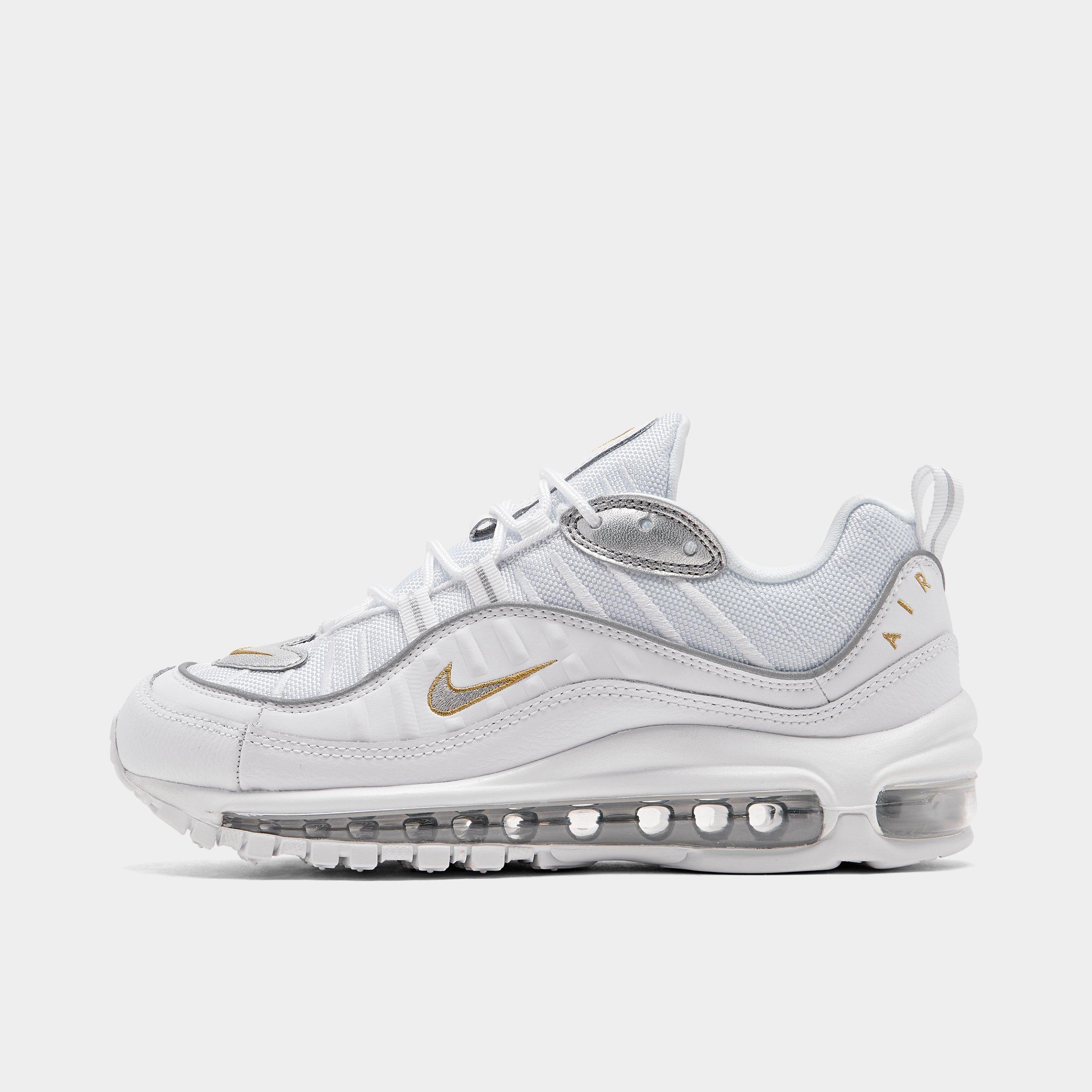 Nike Women S Air Max 98 Metallic Casual Shoes White Metallic Gold Metallic Silver