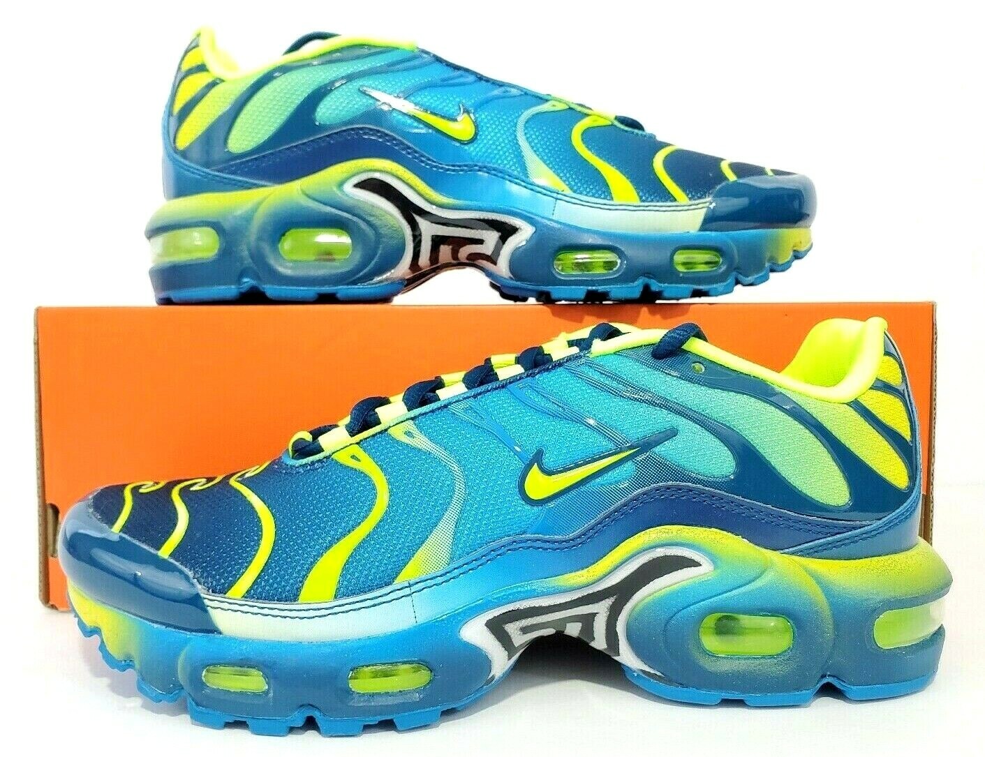 Nike Air Max Plus Qs Blue Hero Blue Force Volt Kids Boys Girls Shoes All Sizes Ebay