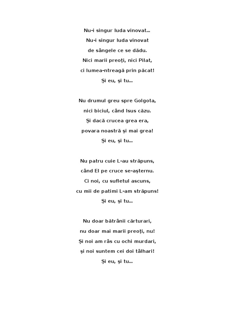 Nu I Singur Iuda Vinovat Versuri Destinatii Traditionale Romanesti