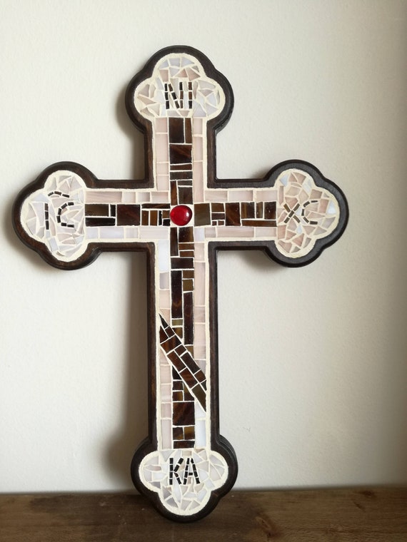Rustic Religious Wall Hanging Cross Mosaic Ic Xc Nika Etsy