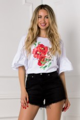 Pantaloni Scurti Albi Cu Talie Inalta Si Nasturi Aurii Ps 771