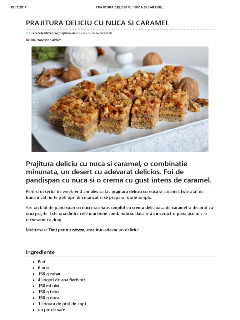 Prajitura Deliciu Cu Nuca Si Caramel Retete Timea