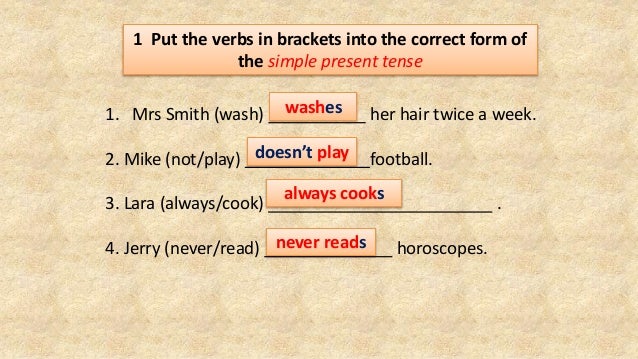 Put the verbs in brackets into the correct present or past tense forms. S 5 do you speak english. Simple present test 1 answers page 3 e put in the verbs in brackets into the gaps. 1 jill has two children. Some are regular and some are irregular.