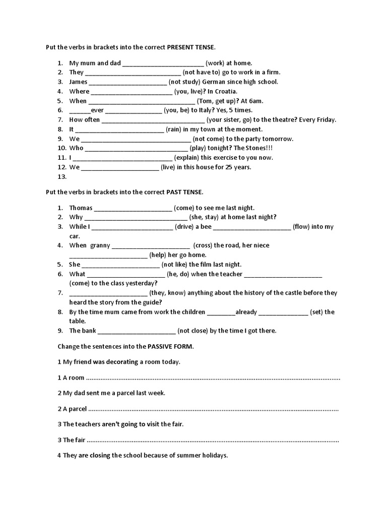 Put The Verbs In Brackets Into The Correct Present Or Past Tense Forms