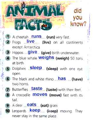 Put The Verbs In Brackets Into The Correct Present Simple Form A Cheetah Run Very Fast Frogs Live On All Continents Except Antarctica Univer Soloby