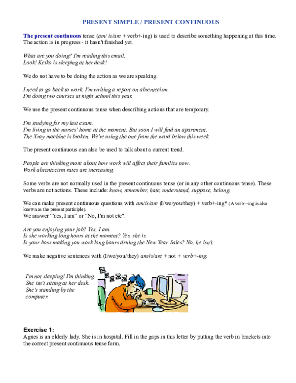 Doc I Simple Present Or Present Continuous Put The Verbs In Brackets Into The Correct Tense Jose Humberto B Trejo Academia Edu