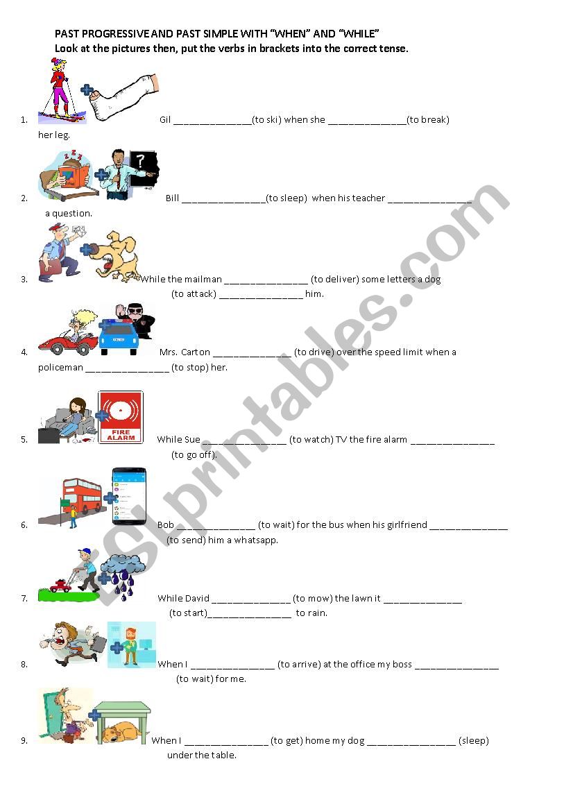 Past Progressive And Past Simple With When And While Esl Worksheet By Heikeo53