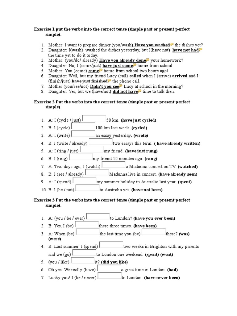 D Put The Verbs In Brackets Into The Correct Tense Present Perfect Or Simple Past 1