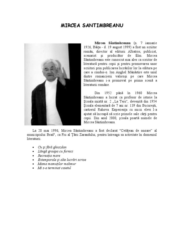 Mircea Santimbreanu Elev Rezumat Rezultate Cautare Librariaonline Ro